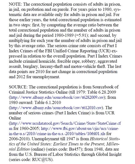 • We can see that, for much of the past century, changes in the U.S. correctional population were almost perfectly ‘explained’, at least statistically, by changes in the rate of unemployment. Rusche was right – indeed more right than he could have anticipated. According to the figure, there is no need for complicated models, multiple variables and assorted excuses (when the models fail). The two forms of sabotage – unemployment and penality – mirror each other almost perfectly.