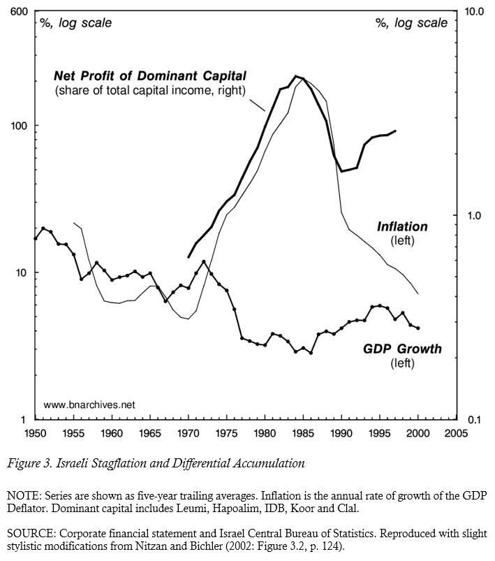 Nitzan, Jonathan, and Shimshon Bichler. 2000. Inflation and Accumulation: The Case of Israel. Science & Society 64 (3): 274-309.