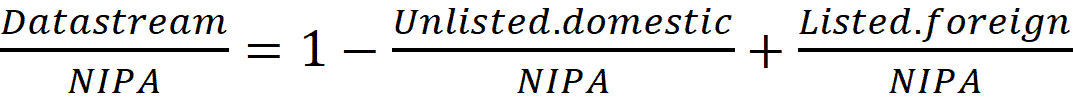 Equations 1 and 2 decompose Datastream and NIPA profit based on the types of firms covered by each (domestic firms are incorporated locally, while foreign firms are those incorporated in another country):