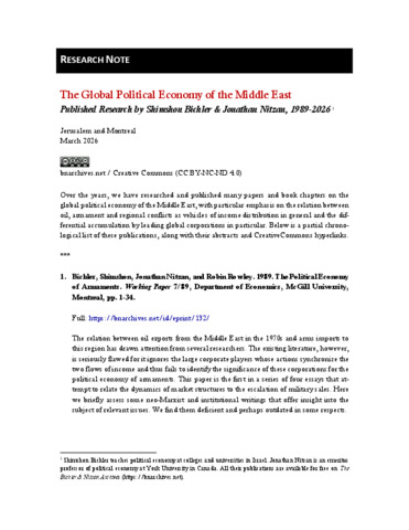 The Global Political Economy of the Middle East. Published Research by Shimshon Bichler & Jonathan Nitzan, 1989-2026